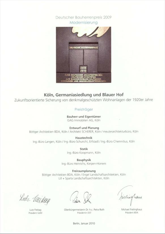 Die Urkunde zum Deutschen Bauherrenpreis Modernisierung 2009/2010