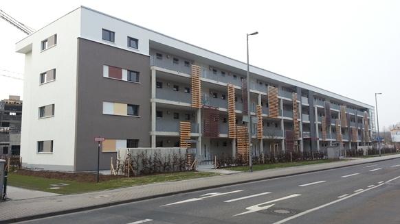 Nach der Grundsteinlegung im Mai 2011 sind die Bauarbeiten am Dansweilerweg im Bauabschnitt 4 / 5 nun abgeschlossen. Die 51 geförderten Wohnungen mit einer Wohnfläche von insgesamt 3.219 Quadratmetern sind zum 1. Oktober 2012 bezogen worden. Das Gebäude wird über eine Luft-Wasser-Wärmepumpe beheizt, die von einer Gas-Brennwerttherme unterstützt wird.